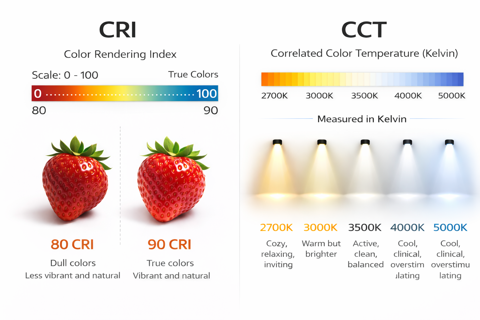 3500K (Neutral White): Active, clean, balanced